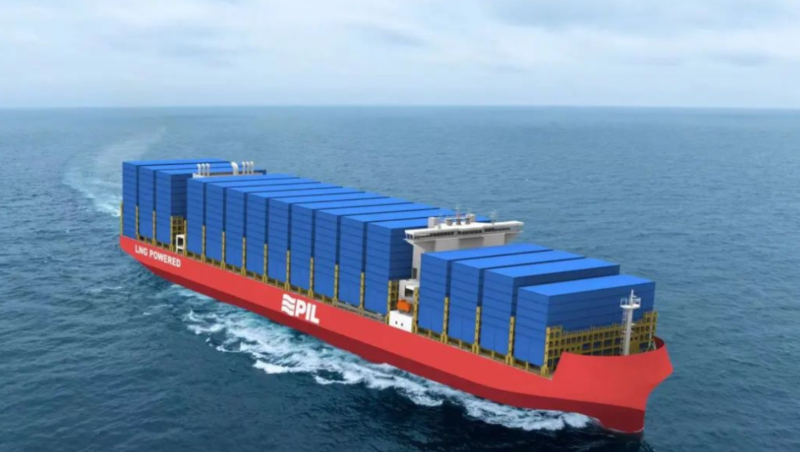 The 9,000 TEU dual-fuel container ship is a green and environmentally friendly vessel independently developed and designed by Hudong-Zhonghua Shipbuilding, specifically tailored to the operational characteristics of PIL. With an overall length of approximately 274 meters and a beam of 45.6 meters, the vessel boasts a maximum container capacity of 9,040 TEU and can carry 1,308 refrigerated containers. Equipped with an LNG dual-fuel propulsion system and featuring a 7,600-cubic-meter Type B LNG fuel tank developed in-house, the vessel ensures a range of 13,000 nautical miles when operating in gas mode.