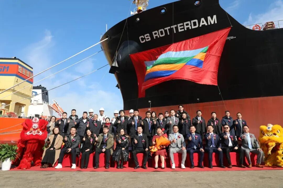 On February 9, CSSC Chengxi Shipyard, a subsidiary of China State Shipbuilding Corporation (CSSC), held the naming and delivery ceremony for the 17th 50,000 DWT MR oil/chemical tanker built for CSSC (Hong Kong) Shipping Company Limited and Seacon Shipping Group Holdings Limited. The new vessel was named CS ROTTERDAM, marking the sixth newly built ship delivered by the company this year.