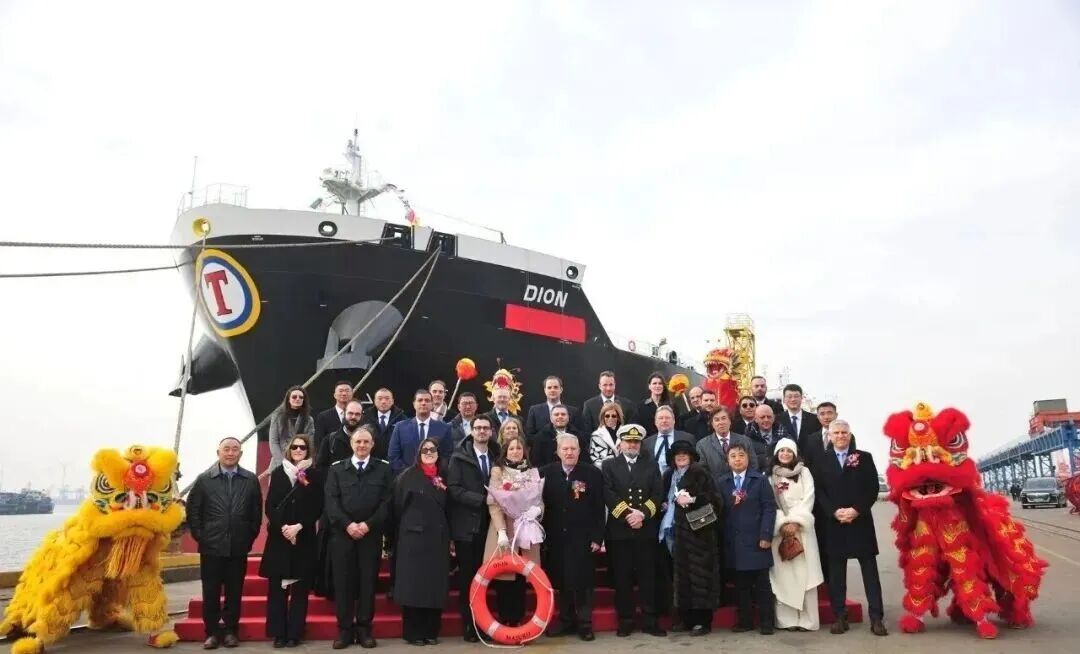 The naming ceremony for the vessel was held on January 12. On that day, Mr. Georges Agostis, Project Manager of the New Shipbuilding Department of TSAKOS, and Mr. Du Chengzong, Vice General Manager of Yangzijiang Shipbuilding Group and General Manager of New Yangzijiang Shipbuilding, signed the delivery documents for the “DION” vessel on behalf of their respective parties.