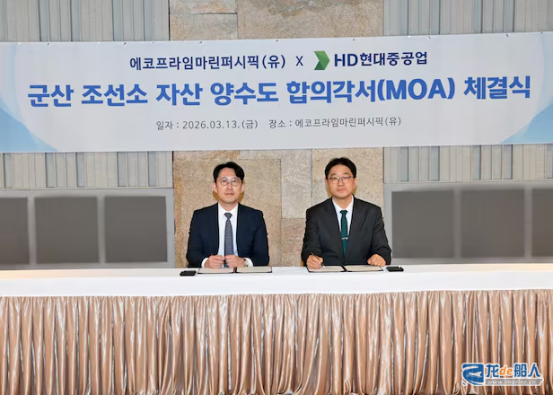 On March 13, Eco Prime Marine Pacific and HD Hyundai Heavy Industries announced that they had signed a Memorandum of Understanding (MOU) regarding the transfer of assets at the Gunsan Shipyard at Eco Prime Marine Pacific’s headquarters in Yongsan-gu, Seoul. The transfer price will be finalized following due diligence and valuation; South Korean media reports estimate it to be between 700 billion and 1 trillion won (approximately $466 million to $666 million).
