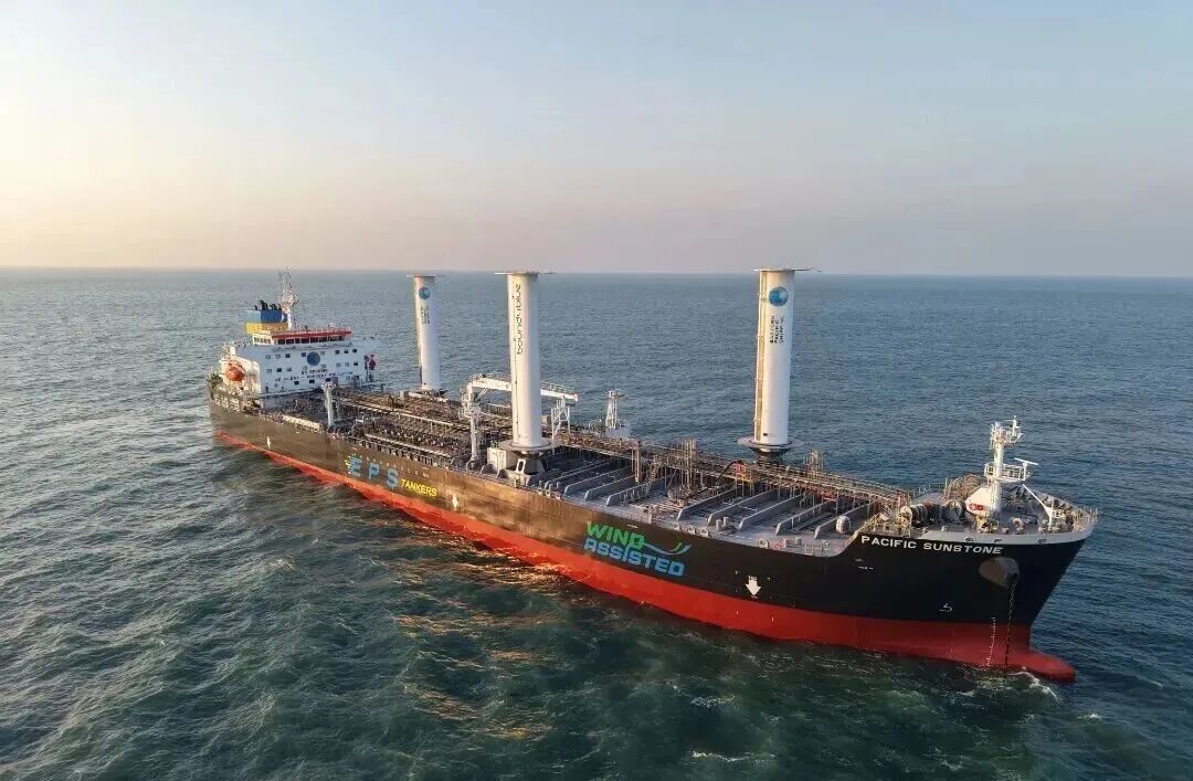 As the first vessel at New Times Shipbuilding to be fitted with sails, the vessel is equipped with three eSAIL® suction sails manufactured by the Spanish company BOUND 4 BLUE. Each unit stands 25 meters tall, measures 4.5 meters in width, and weighs 45 tons. The system generates powerful auxiliary thrust by using fans to draw in air; it is projected to achieve fuel savings of 10% to 30%, thereby effectively reducing carbon emissions.
