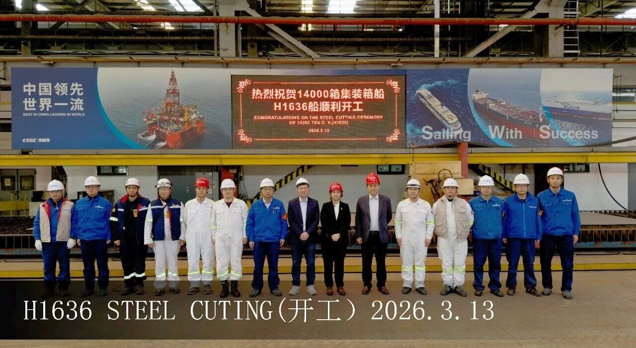 On March 13, Waigaoqiao Shipbuilding officially held the steel-cutting ceremony, marking the commencement of construction on the lead vessel of a series of 14,000 TEU container ships bound for Taiwan-based carrier T.S. Lines.