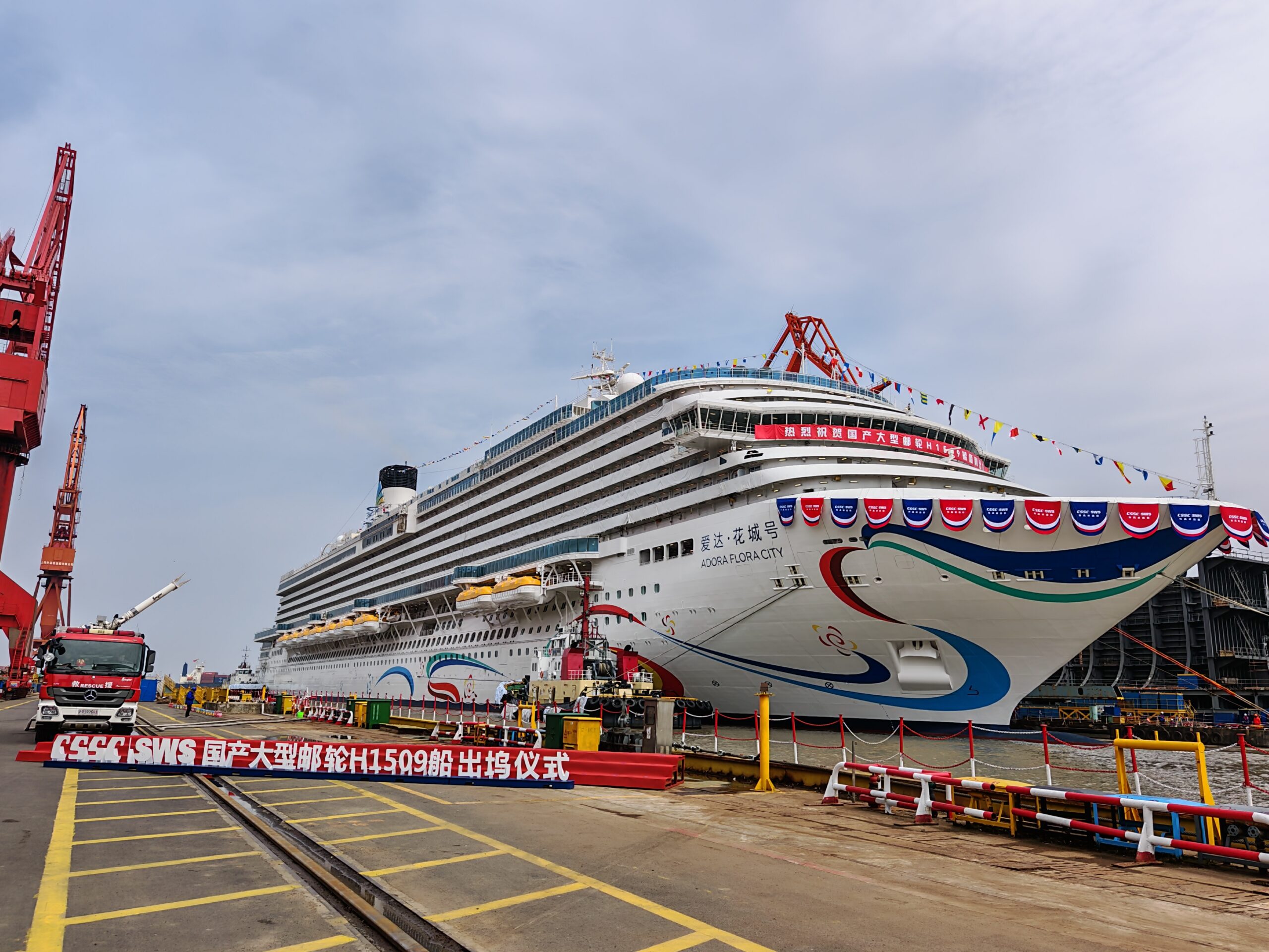 On March 20, the second domestically built large cruise ship, the “Adora Flora City,” was successfully launched at Shanghai Waigaoqiao Shipbuilding Co., Ltd., a subsidiary of China State Shipbuilding Corporation, and has now entered the dock commissioning phase. The ship is expected to be delivered by the end of 2026.