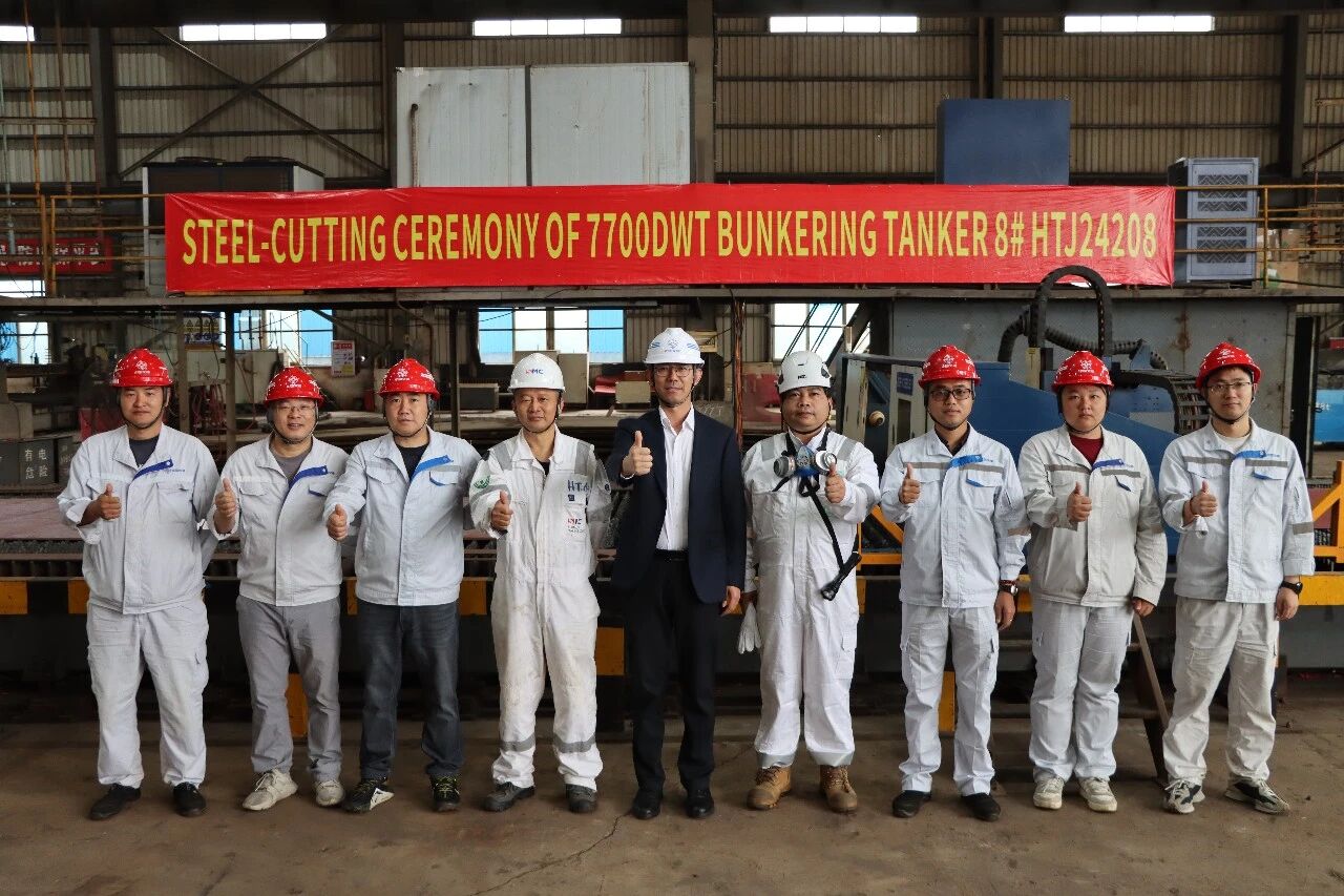 Jiangmen Hangtong Shipbuilding Co., Ltd. of CCCC Fourth Harbor Engineering held the steel cutting ceremony for the 8th 7700DWT oil tanker on March 20.