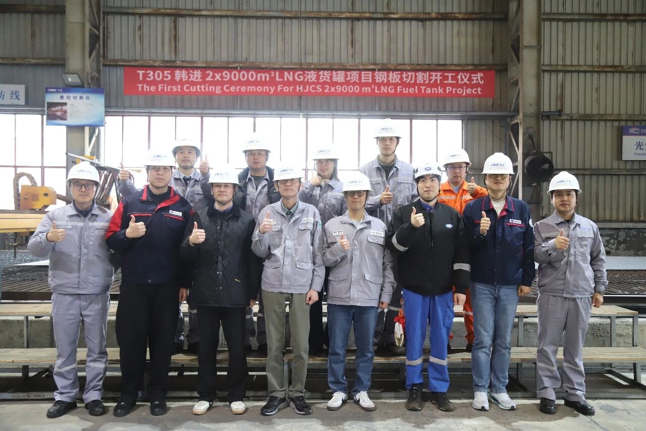 Recently, Nantong CIMC Sinopacific Offshore & Engineering Co., Ltd. (CIMC SOE) held a steel cutting ceremony for the first 9,000 m³ LNG tank (T305 Project) constructed for South Korea’s SUNBO.