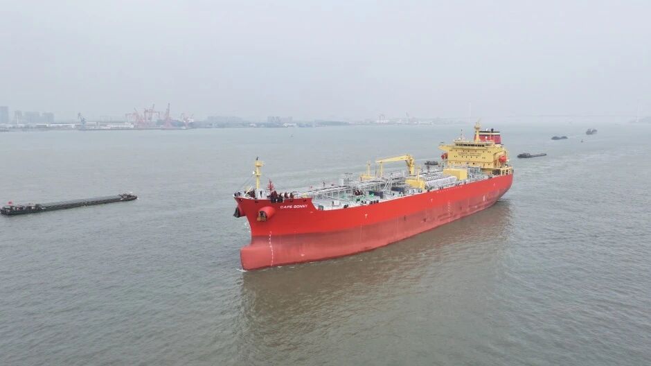 On March 26, Chengxi Shipyard delivered “CAPE BONNY”, the second newbuilding in its series of the 50,000 DWT Product Oil/Chemical Tanker built for SCHOELLER, achieving a strong start to the first quarter. It also marks the eighth newbuilding delivered by the shipyard so far this year.