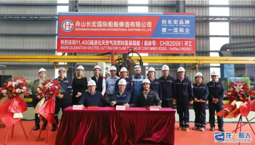 On March 30, Zhoushan Changhong International Shipyard held the keel-laying ceremony for the CHB2059, the first 11,400-TEU LNG dual-fuel container ship being built for OCEANROUTES. This marks the official launch of the project collaboration between ZHC International and the new shipowner, as both parties enter a new phase of mass production of large dual-fuel container ships.