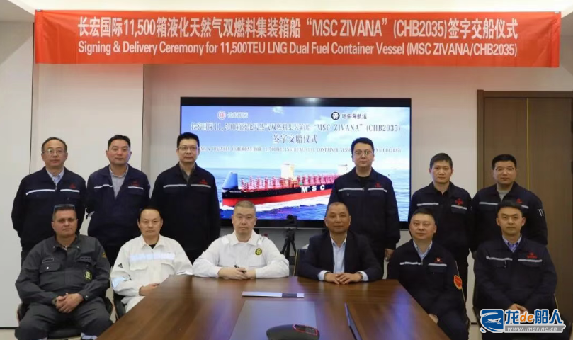 On April 2, Zhoushan Changhong International officially delivered the 11,500-TEU LNG dual-fuel container ship “MSC ZIVANA” (Hull No. CHB2035) to Mediterranean Shipping Company (MSC). The handover was finalized via video conference, marking a delivery 180 days ahead of the contractual schedule. This achievement follows the vessel’s naming ceremony held on April 1.