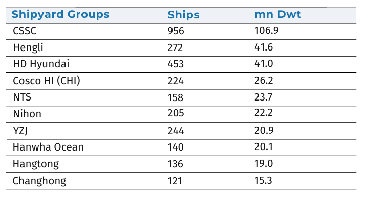 Hantong Shipbuilding: With 136 vessels and 19 million DWT in its order book, it ranks ninth globally.