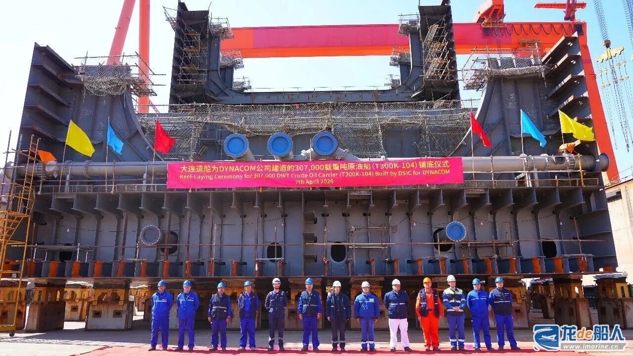 On April 7, the keel-laying ceremony for the T300K-104, the first 307,000-DWT vary-large crude carrier (VLCC) being built by Dalian Shipbuilding Industry (DSIC) Tianjin for DYNACOM, was held in Dry Dock No. 2 at DSIC in Tianjin. This marks the vessel’s official entry into the critical phase of key construction phase. Construction of the vessel began on July 22, 2025.