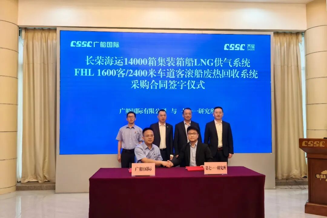 On April 9, Shanghai QiYao Environmental Technology Co., Ltd., a subsidiary of the Shanghai Marine Diesel Engine Research institute (SMDERI) of China State Shipbuilding Corporation (CSSC), signed two major procurement contracts with CSSC Guangzhou Shipyard International Co., Ltd. The contracts pertain to the LNG supply system for Evergreen Marine’s 14,000 TEU container ship and the waste heat recovery system for the FHL 1,600-passenger/2,400-lane ro-pax vessel.