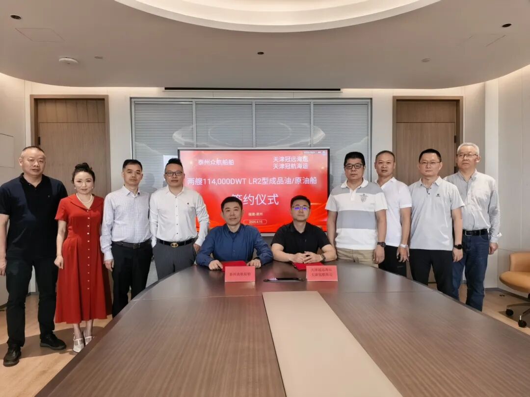 According to the official WeChat account of Shishi Dingsheng Shipping Co., Ltd., on April 15, Tianjin Guanyuan Shipping Co., Ltd. and Tianjin Guanhang Shipping Co., Ltd. signed a construction contract with Taizhou Zhonghang Shipbuilding Co., Ltd. (Zhonghang Shipbuilding) for two 114,000 DWT LR2 product/crude oil tankers, which are expected to be delivered in March and June 2029, respectively.