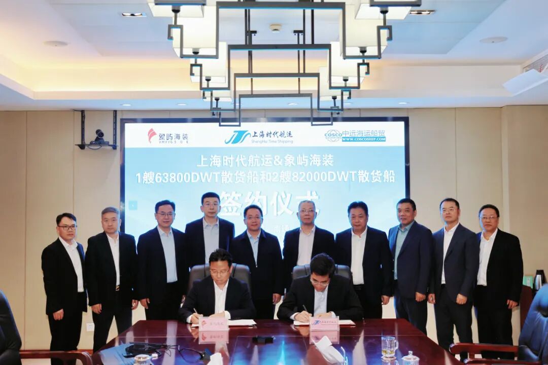 On April 22, Nantong Xiangyu Shipbuilding & Offshore Engineering and Shanghai Times Shipping Co., Ltd. officially signed a construction contract for one 63,800 DWT bulk carrier and two 82,000 DWT bulk carriers.