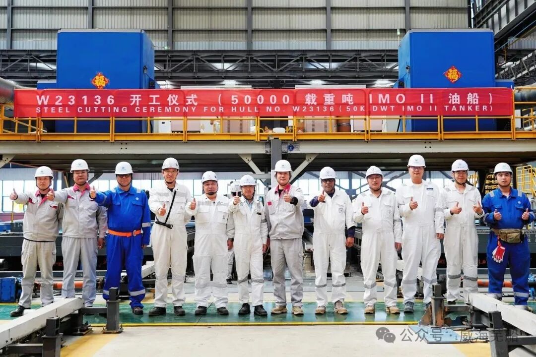 Recently, Wuhu Shipyard successfully held a steel cutting ceremony for a 50,000 DWT IMO II-class product/chemical tanker at its Weihai base.
