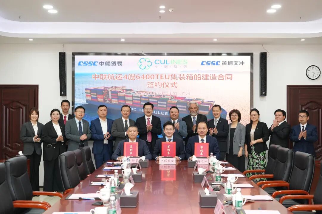 On April 28, CSSC Huangpu Wenchong Shipbuilding Co., Ltd., in collaboration with China Shipbuilding Trading Co. Ltd (CSTC), successfully signed a contract with China United Lines Ltd. in Guangzhou for the construction of four 6,400 TEU medium-sized container ships.